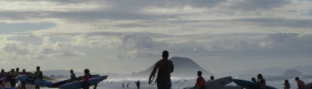 Surfistas en Papamoa, Tauranga. Foto: María Inés Quiroga